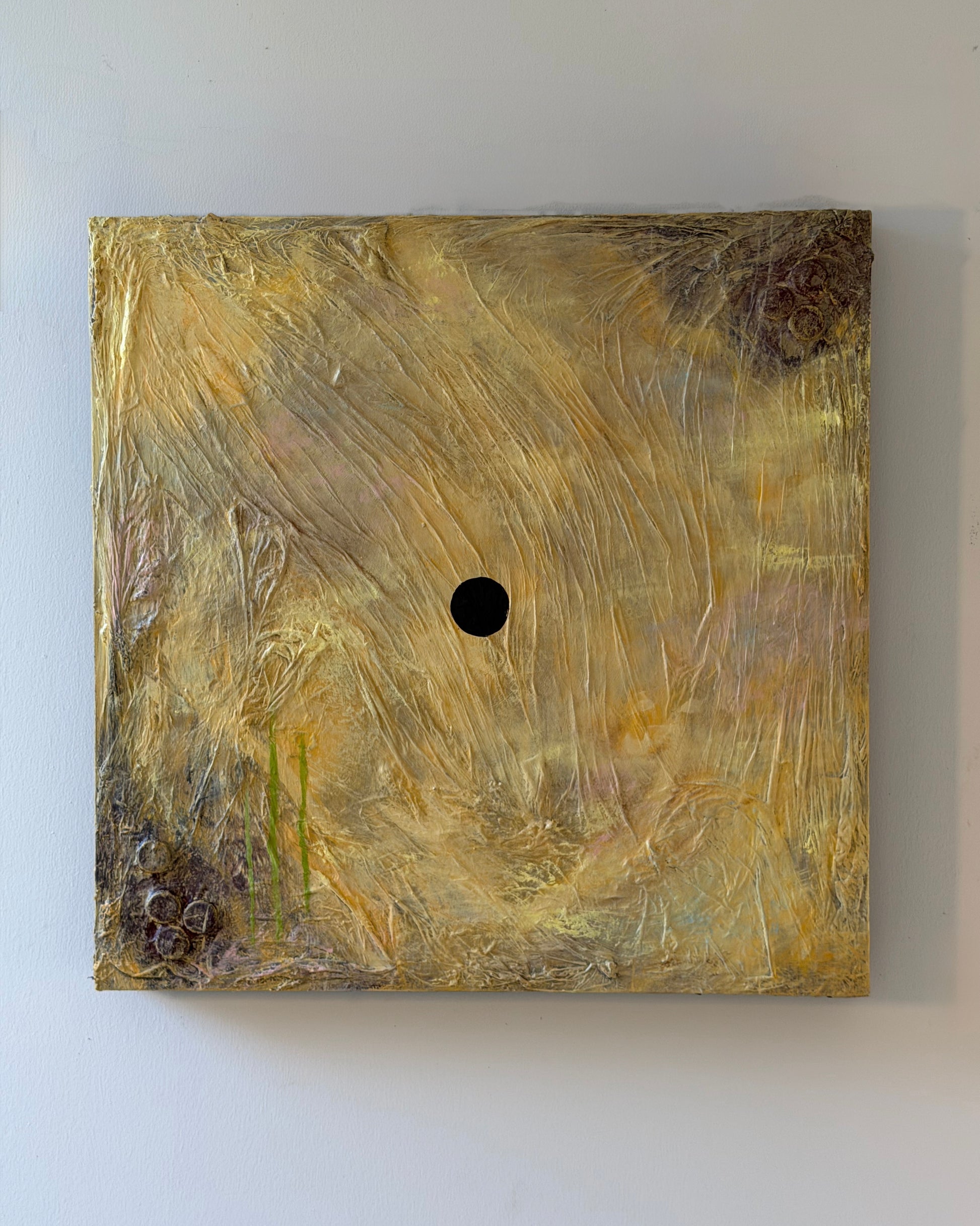 -original painting, mixed media: collected trash materials collaged onto canvas and finished with oil paint